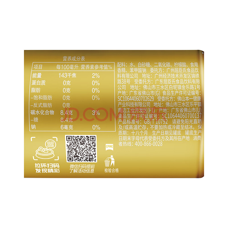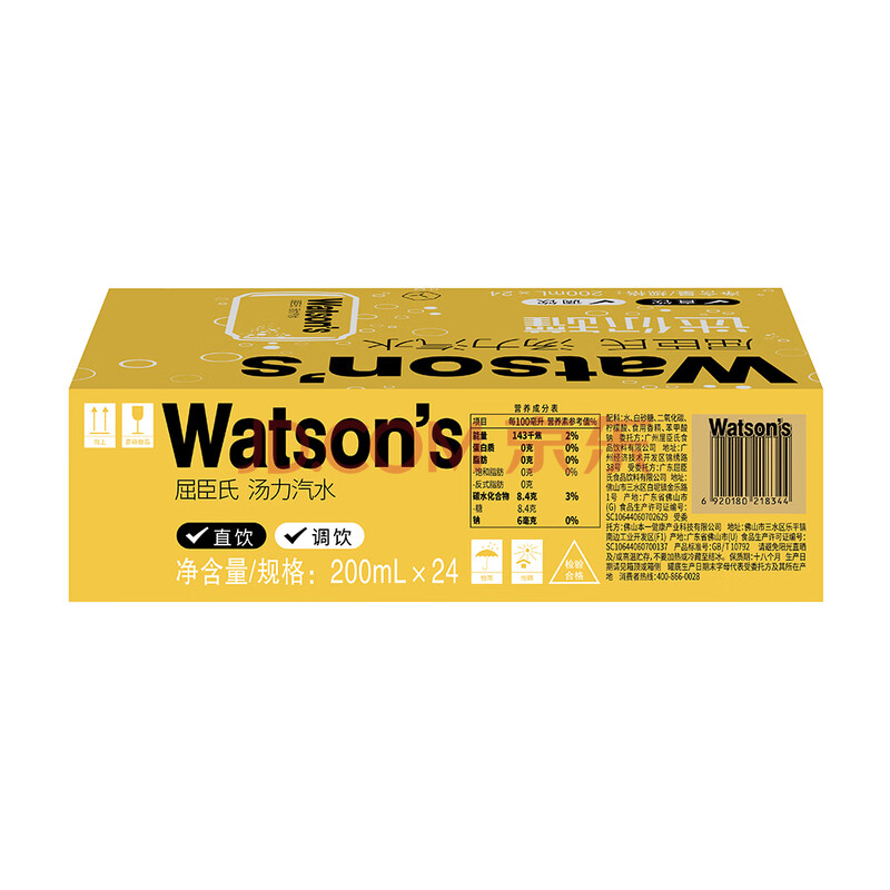 商品名称:屈臣氏(Watsons)苏打水汤力气泡水0脂金酒调酒饮料迷你便携装200mL*24罐整箱