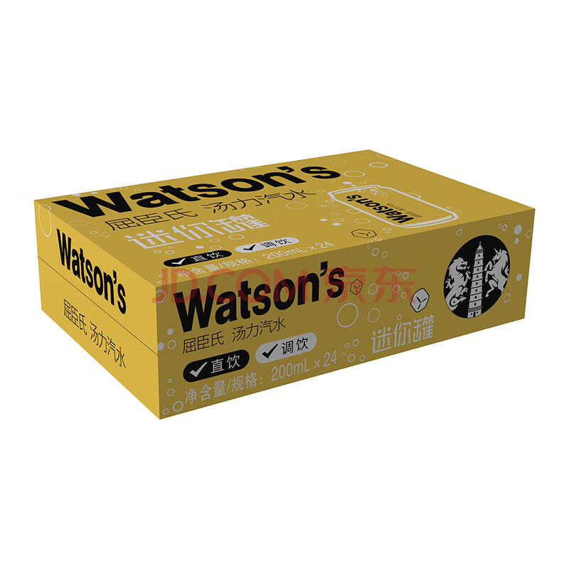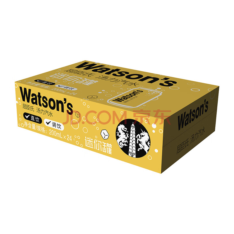 > 屈臣氏(Watsons)苏打水汤力气泡水0脂金酒调酒饮料迷你便携装200mL*24罐整箱