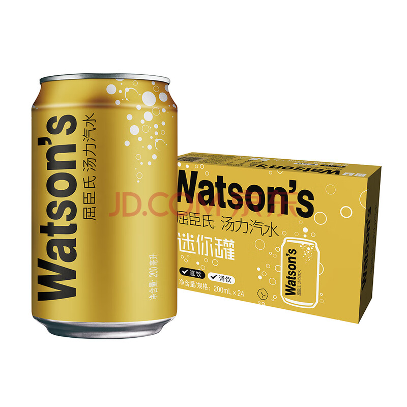 屈臣氏(Watsons)苏打水汤力气泡水0脂金酒调酒饮料迷你便携装200mL*24罐整箱