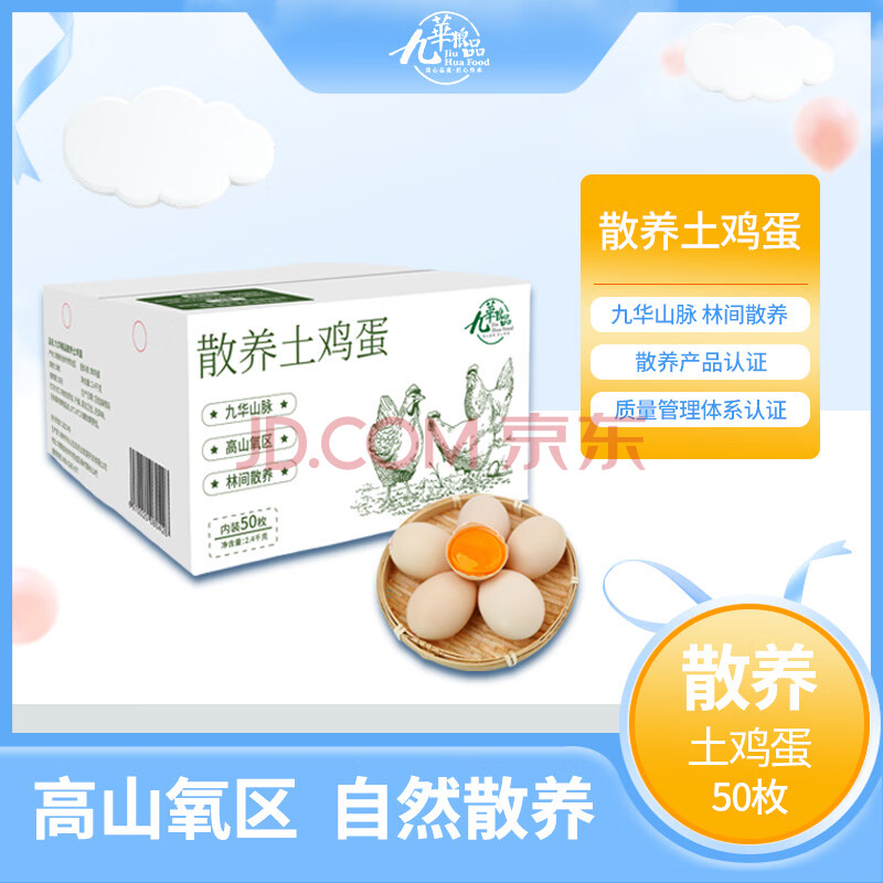> 九華粮品散养土鸡蛋50枚 净重4.8斤 新鲜宝宝蛋
