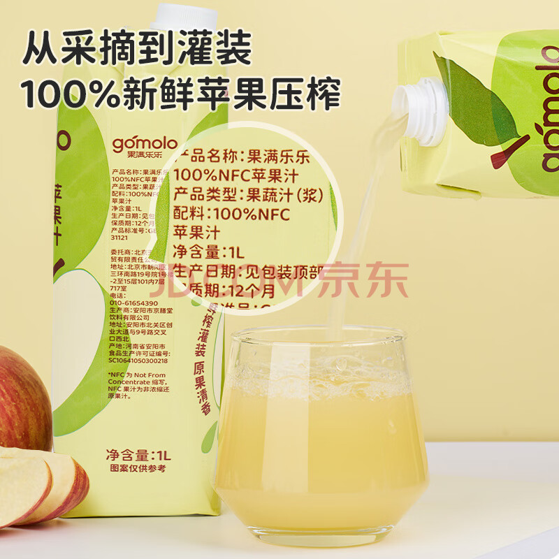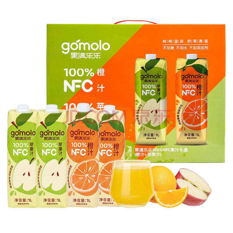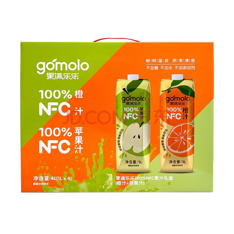 商品名称:果满乐乐(gomolo)100%NFC橙汁+苹果汁果汁礼盒 4升 饮料鲜果冷压榨鲜榨果汁