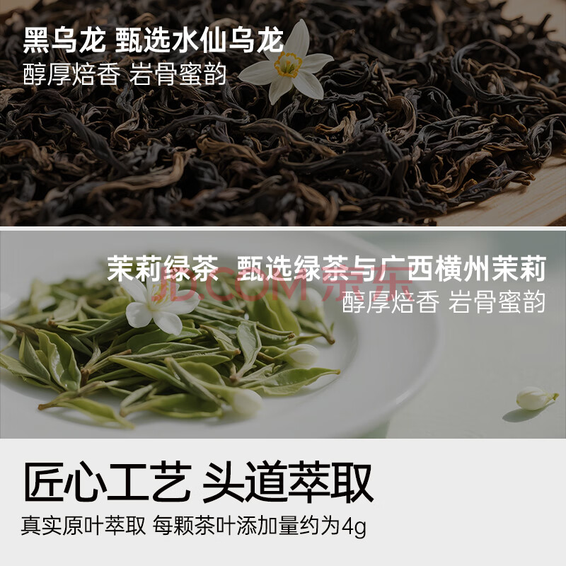 连咖啡浓缩茉莉绿茶+黑乌龙凉茶饮料 无糖0脂0卡冷泡茶刮油20ml*20颗