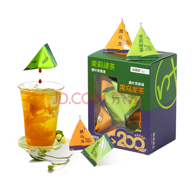 商品名称:连咖啡浓缩茉莉绿茶+黑乌龙凉茶饮料 无糖0脂0卡冷泡茶刮油20ml*20颗