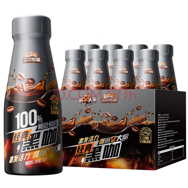 商品名称:三只松鼠第二大脑美式黑咖啡300ml*8健身防困办公室饮料年货礼盒