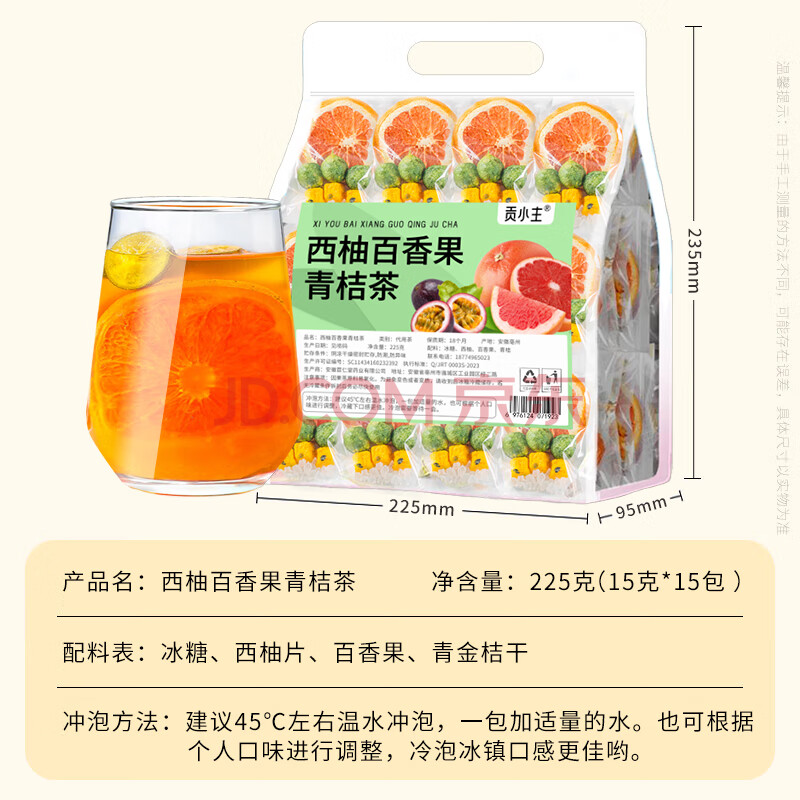 商品名称:贡小主水果茶包 西柚青桔百香果茶225g 冻干水果茶冷泡水喝的花果茶
