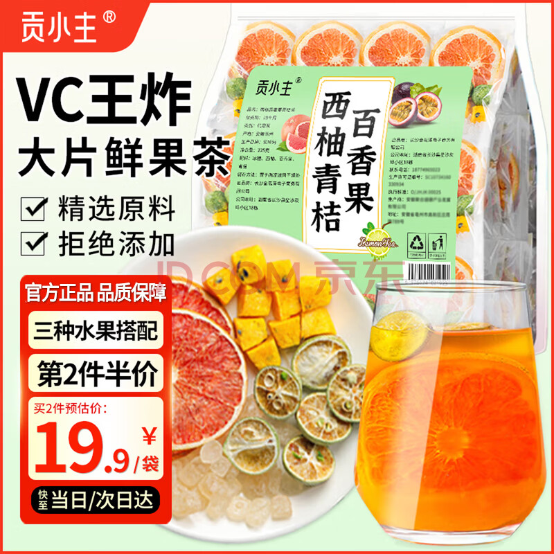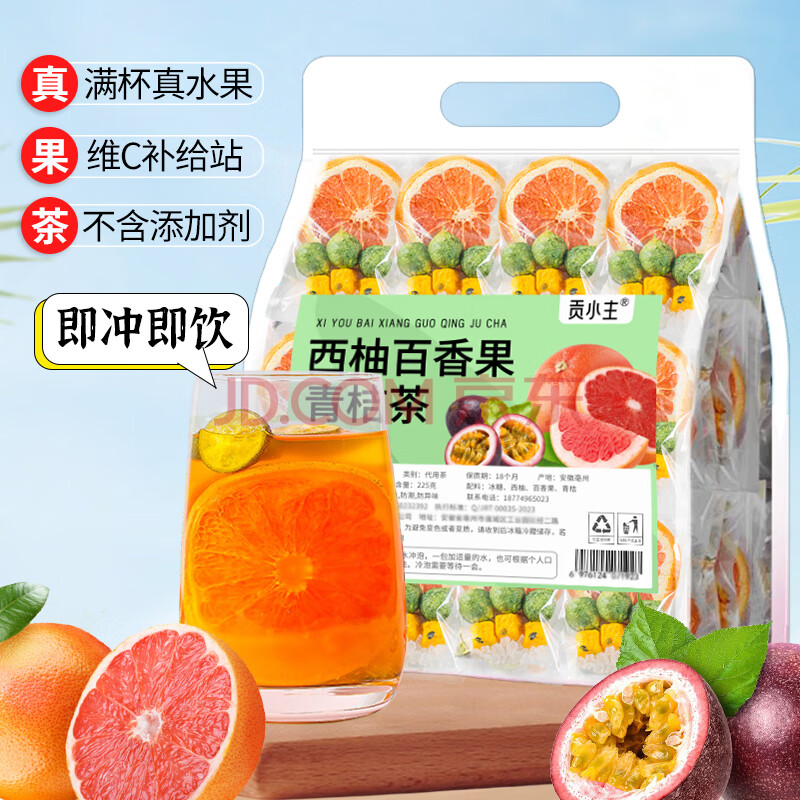 > 贡小主水果茶包 西柚青桔百香果茶225g 冻干水果茶冷泡水喝的花果茶