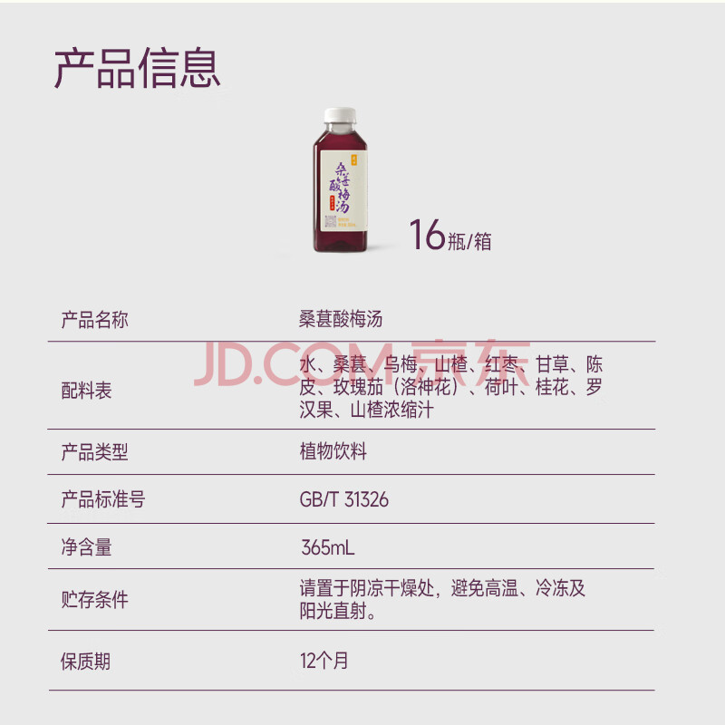 商品名称:晓田桑葚酸梅汤 295ml*20瓶/365ml*16瓶新老包装随机发货
