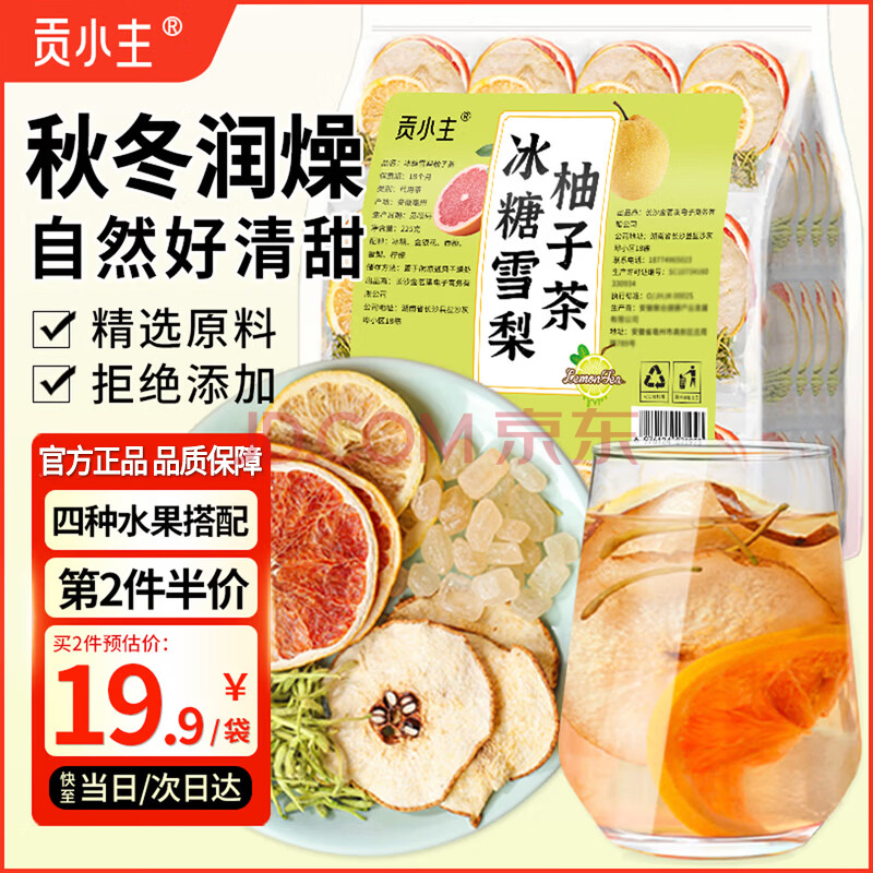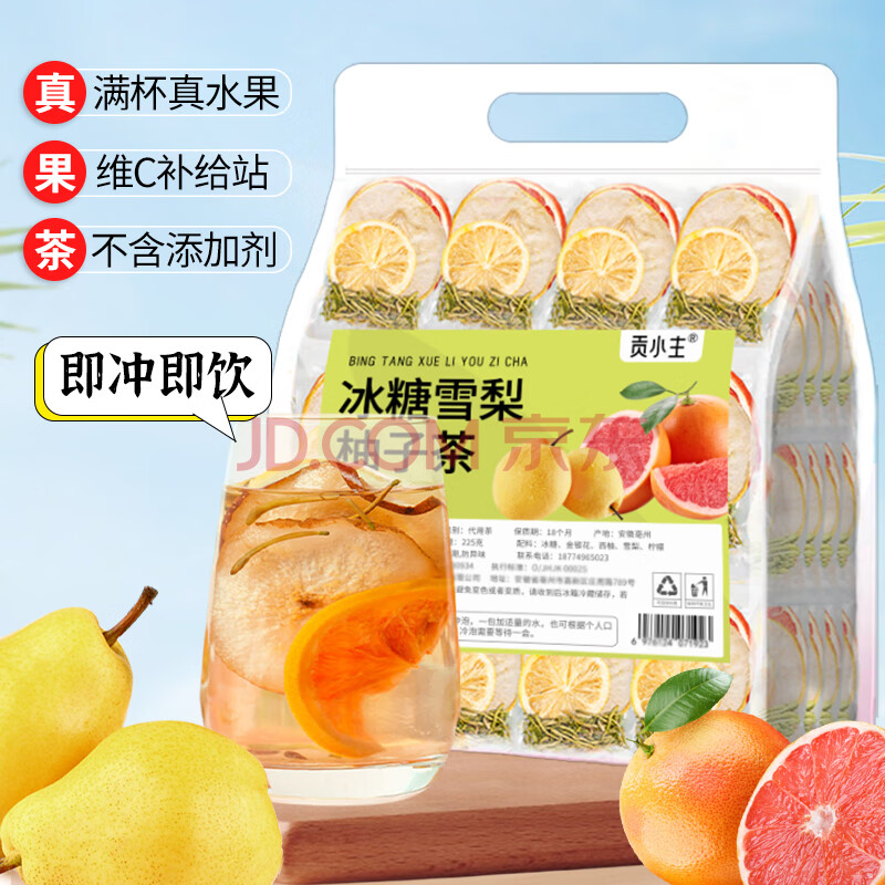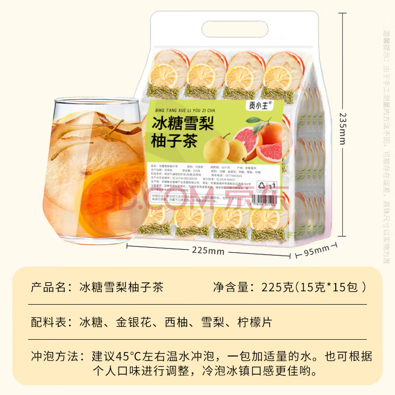 > 贡小主水果茶包 冰糖雪梨柠檬柚子茶225g 冻干柠檬片冷泡水喝的花果茶