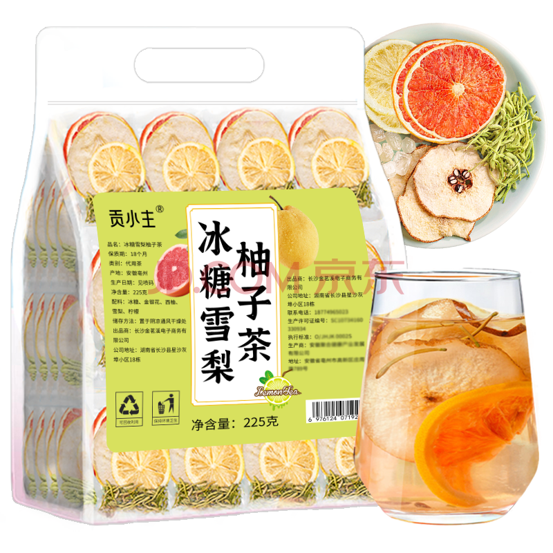 商品名称:贡小主水果茶包 冰糖雪梨柠檬柚子茶225g 冻干柠檬片冷泡水喝的花果茶