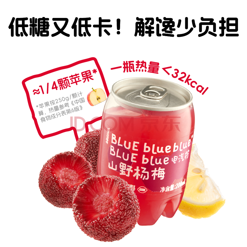 商品名称:柠檬共和国(Lemon Republic)山野杨梅低糖低卡轻负担常温气泡饮料办公室下午茶200ml*24罐