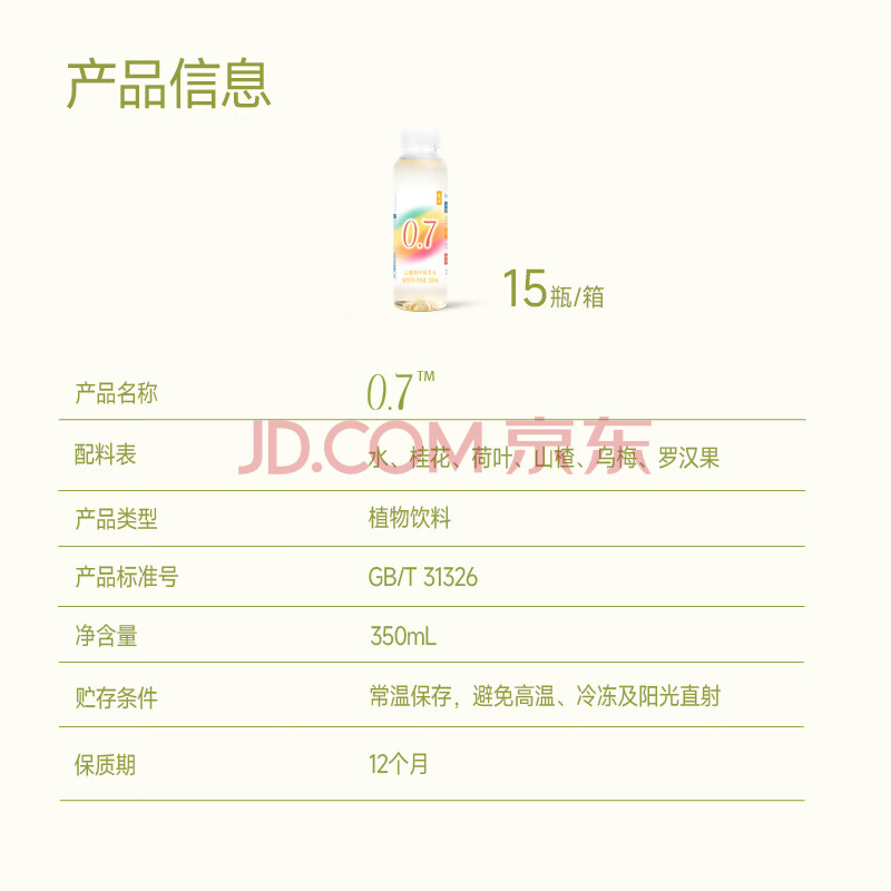 商品名称:晓田0.7 山楂荷叶桂花水350ml*15瓶 养生水0代糖0防腐剂0咖啡因
