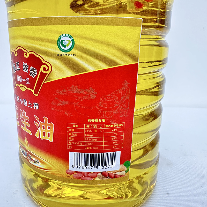 商品名称:凌云名树小粒土榨花生油2.5L/桶/PC