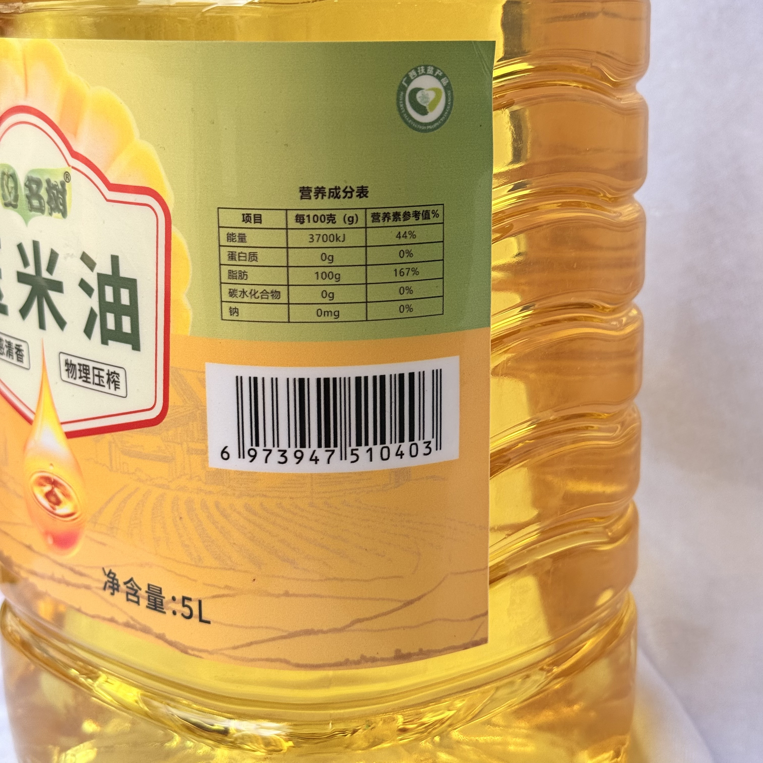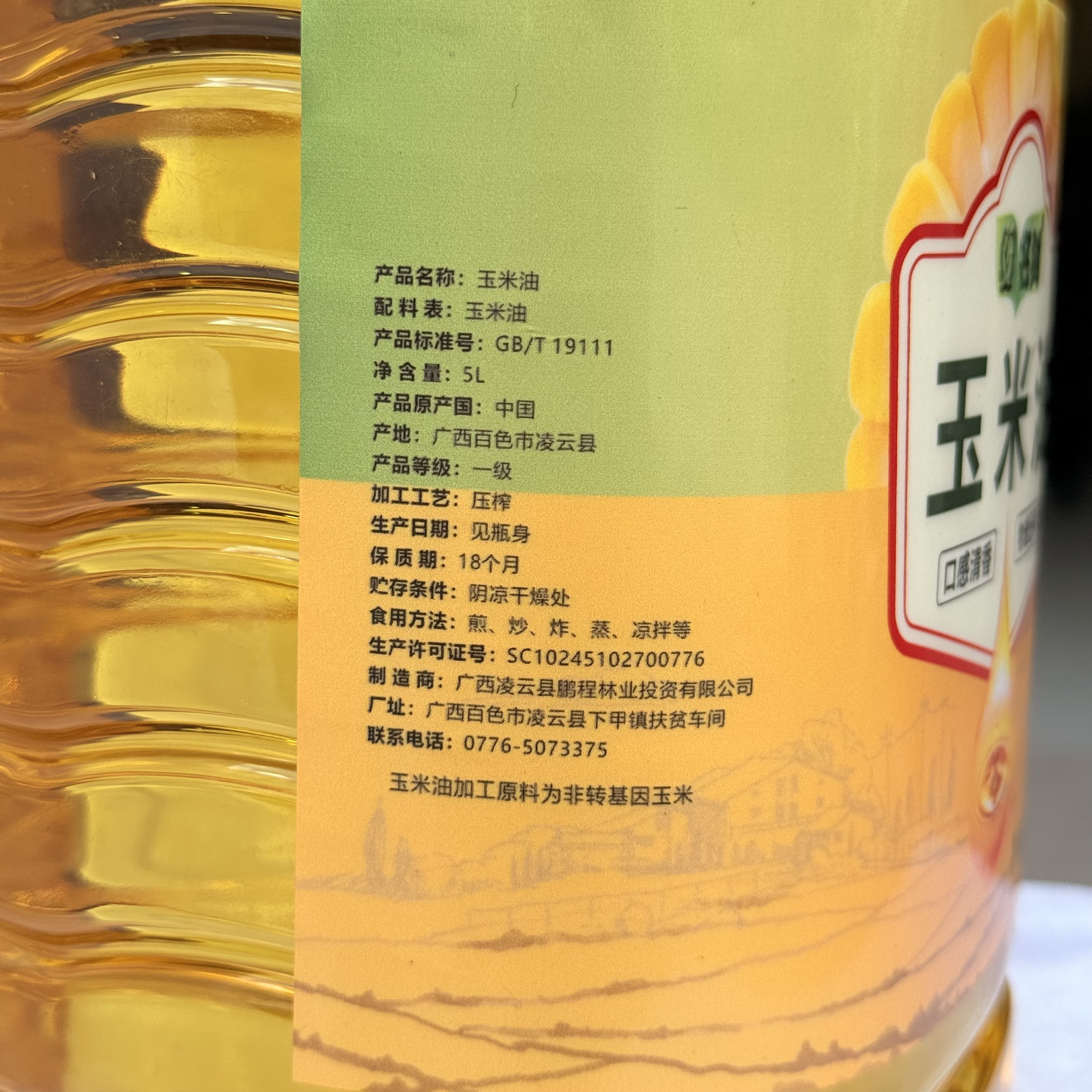 商品名称:凌云名树玉米油5L/桶/PC