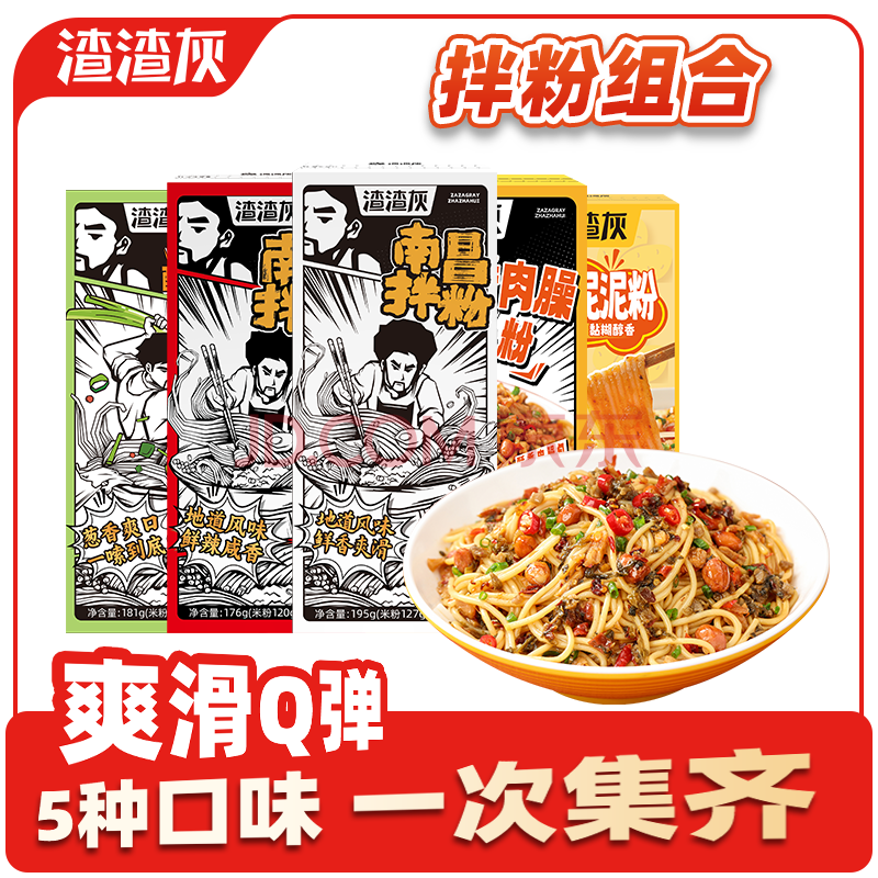 > 渣渣灰南昌拌粉5盒5种口味组合荤素搭配地道江西米粉米线方便速食食品