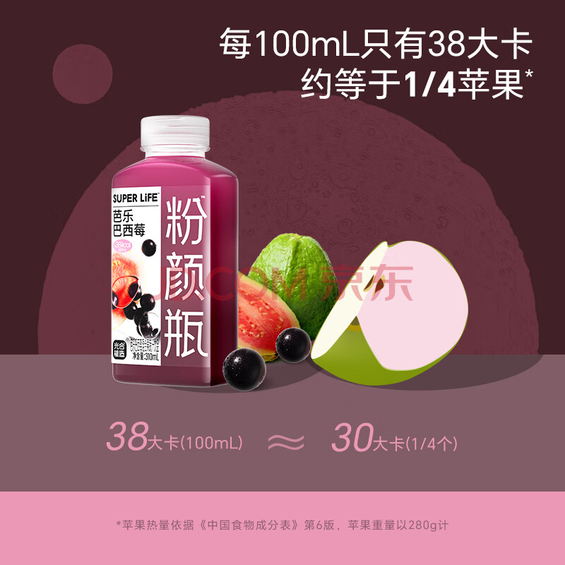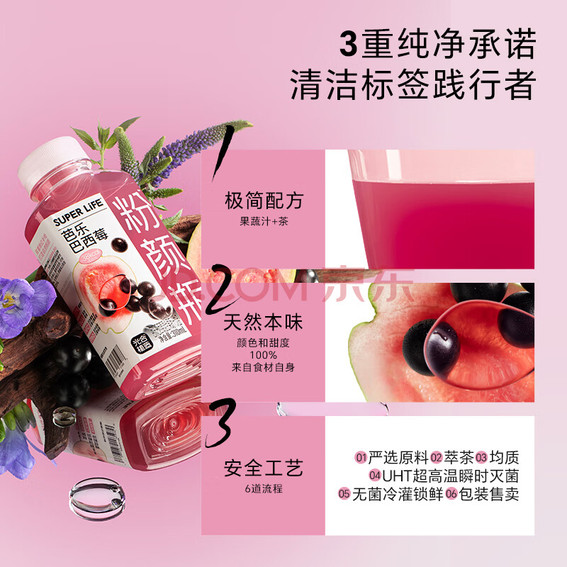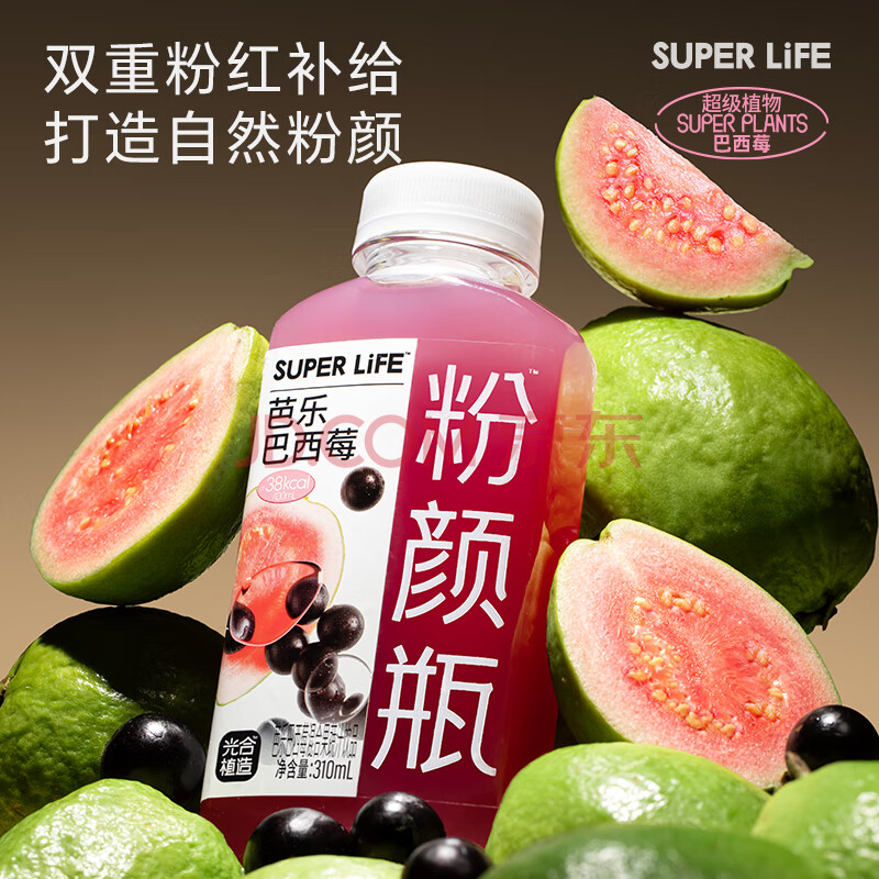商品名称:光合植造SUPERLIFE粉颜瓶芭乐巴西莓复合果蔬汁健康饮品饮料310ml*6瓶
