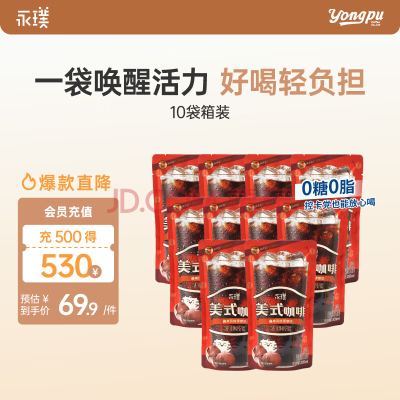 商品名称:永璞即饮美式冰袋咖啡液饮料0糖0脂 榛果风味 200ml*10袋 搭配冰杯