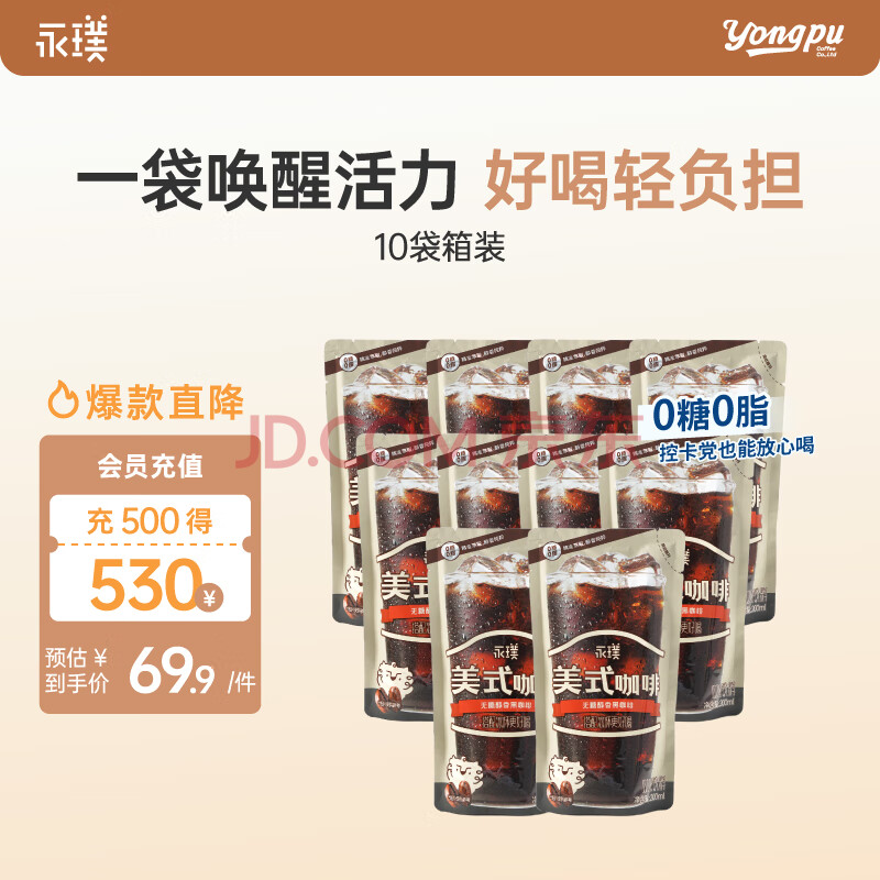 商品名称:永璞即饮美式冰袋咖啡液饮料0糖0脂 醇香无糖 200ml*10袋 搭配冰杯