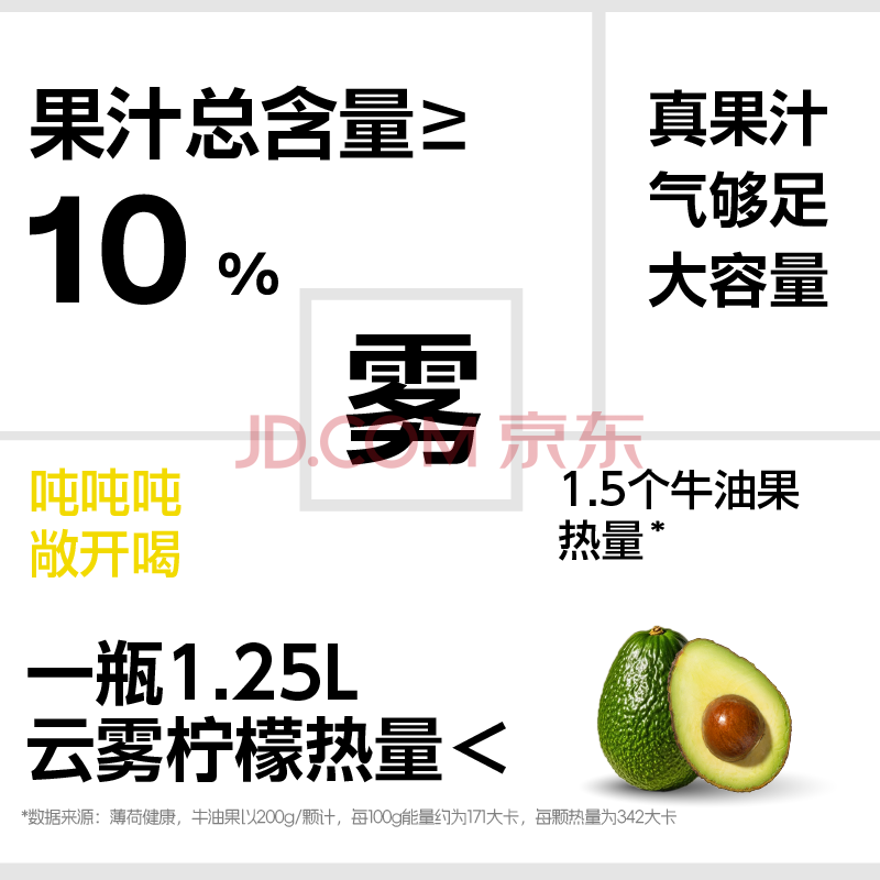 商品名称:柠檬共和国(Lemon Republic)云雾柠檬复合气泡果汁微气泡真果汁饮料大容量1.25L一瓶年货