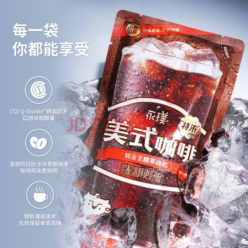 商品名称:永璞即饮美式冰袋咖啡液饮料0糖0脂 特浓无糖 200ml*10袋 搭配冰杯