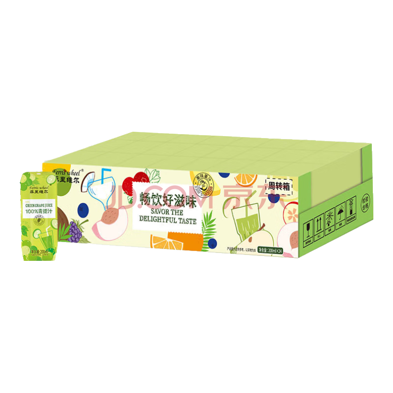 商品名称:菲里维尔 FERRIS WHEEL100%青提汁复原葡萄汁果汁饮料 200ml*24瓶 便携箱装清甜果汁饮品