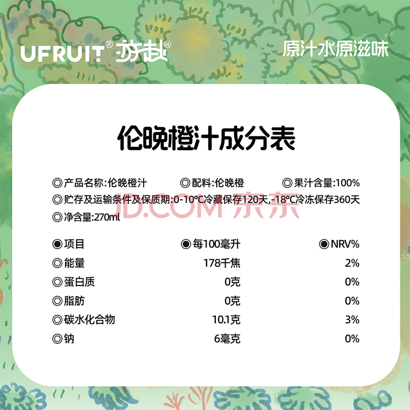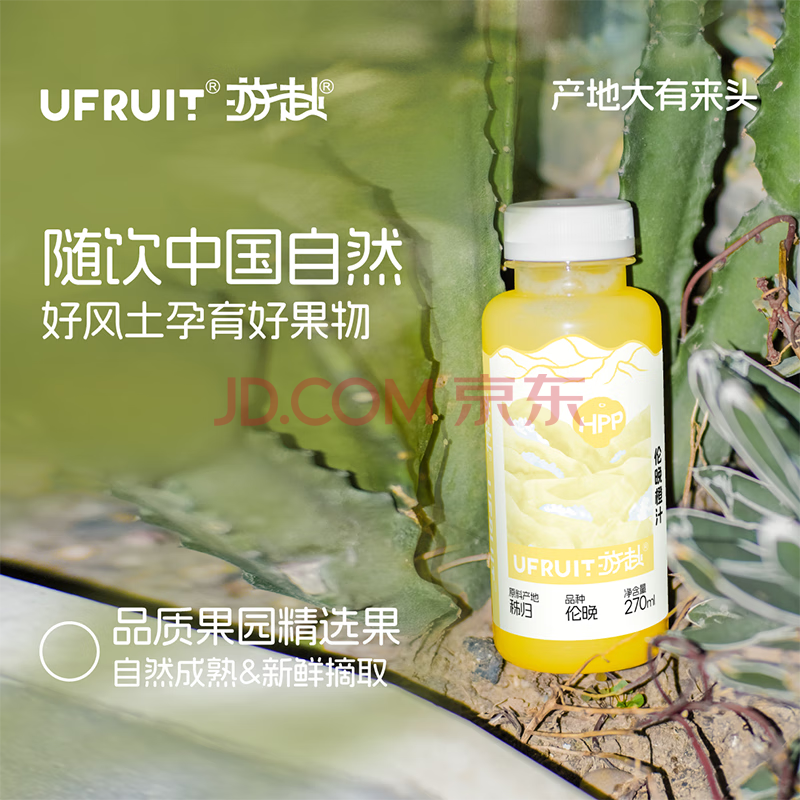商品名称:UFRUIT游赴100%HPP果汁冷藏饮料无添加 伦晚橙汁270ml*6瓶 整箱装