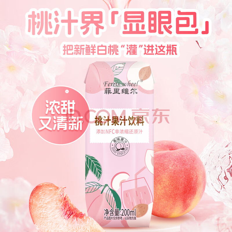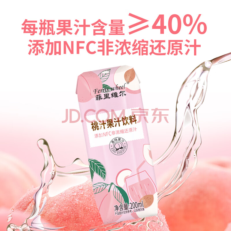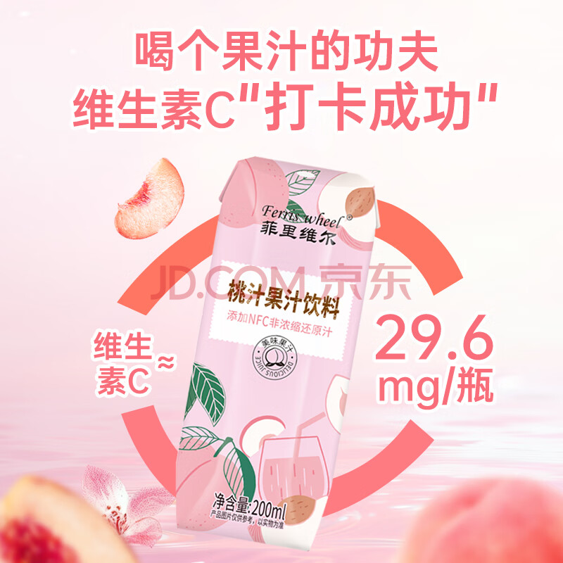 > 菲里维尔 FERRIS WHEEL桃汁复原果汁饮料 200ml*24瓶 含NFC果汁便携箱装清甜果汁饮品