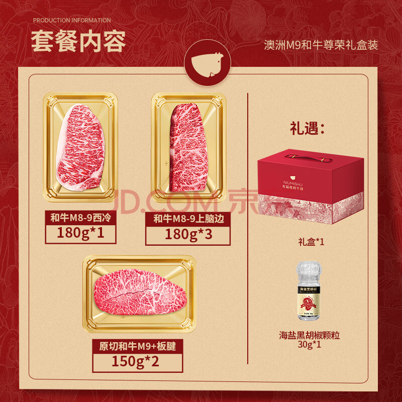 商品名称:牛秘书澳洲谷饲M9级和牛牛肉礼盒1.02kg西冷板腱原切牛排礼盒源头直发