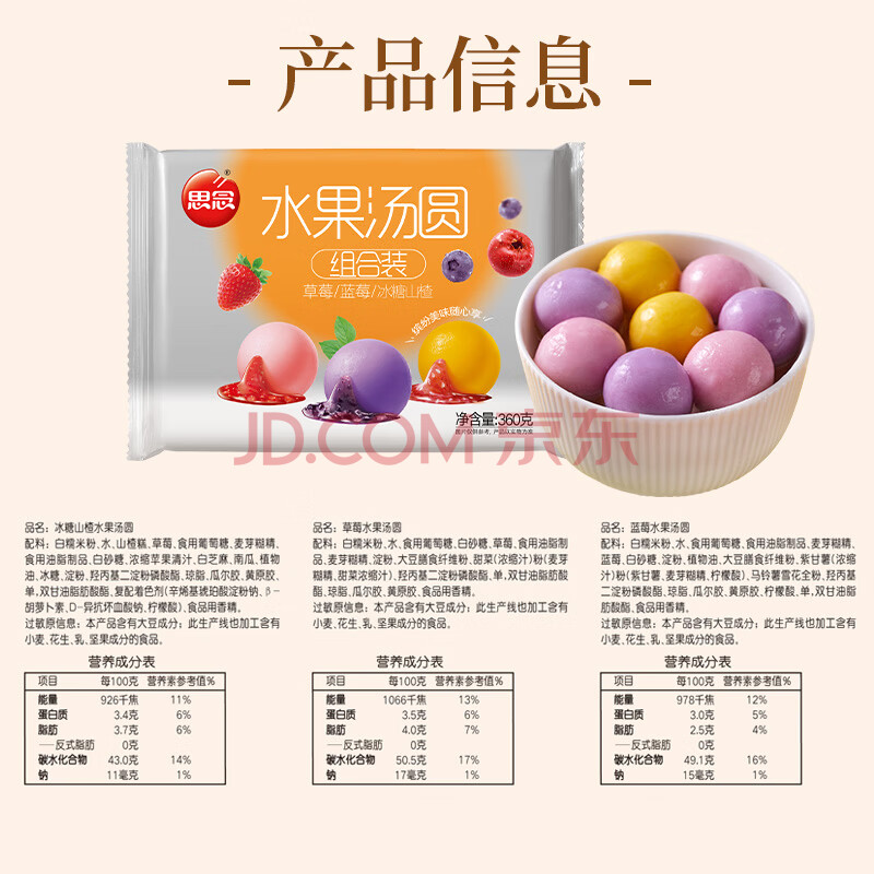 商品名称:思念水果小汤圆组合360g约30颗含草莓/蓝莓/冰糖山楂 早餐年货小圆子