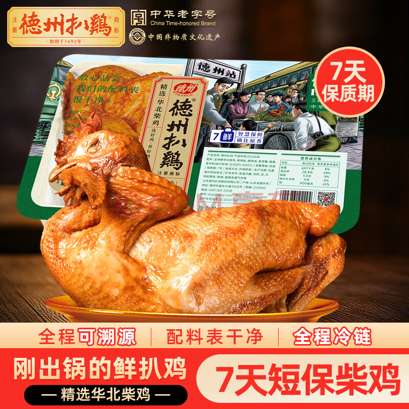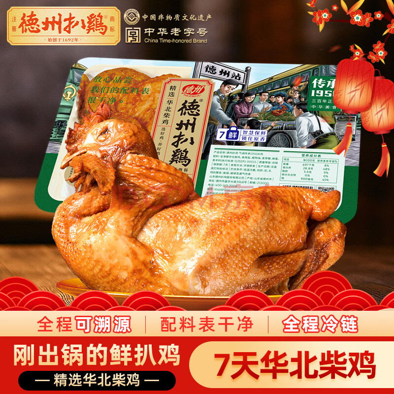 > 德州扒鸡山东特产刚出锅鲜扒鸡柴鸡配料表干净1956盒装五香味600g源头直发