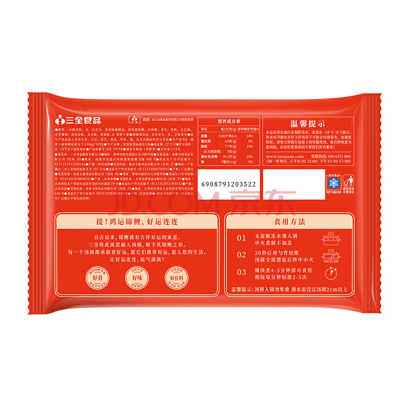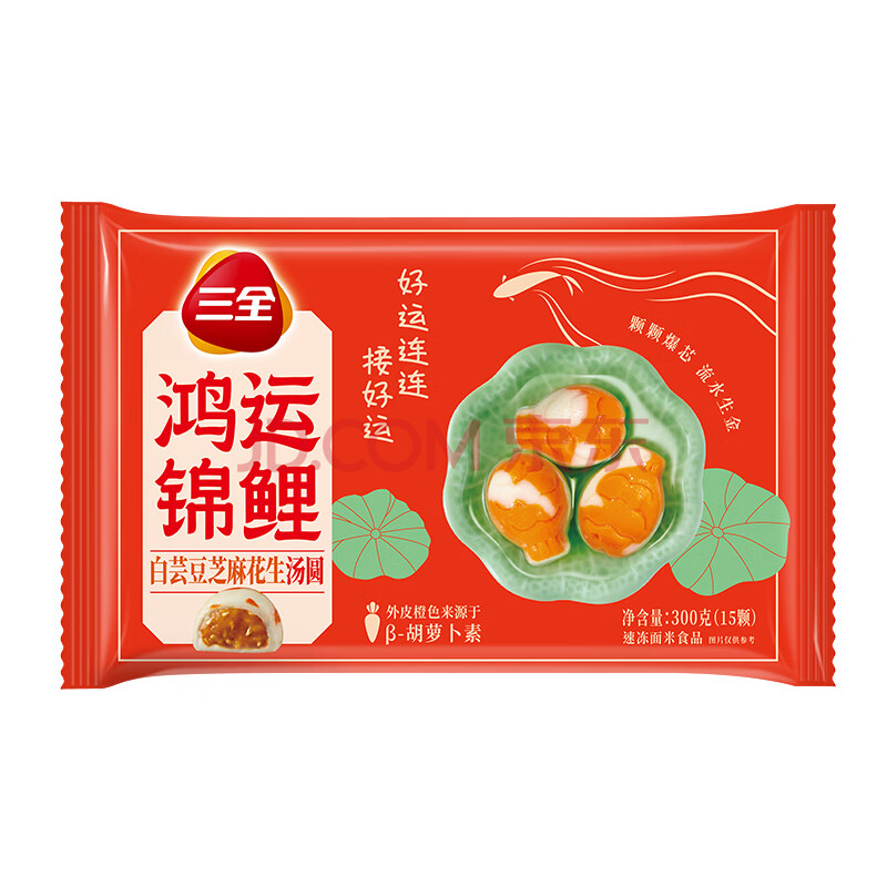 商品名称:三全鸿运锦鲤白芸豆芝麻花生汤圆300g15颗 早餐元宵汤圆甜品速冻食品
