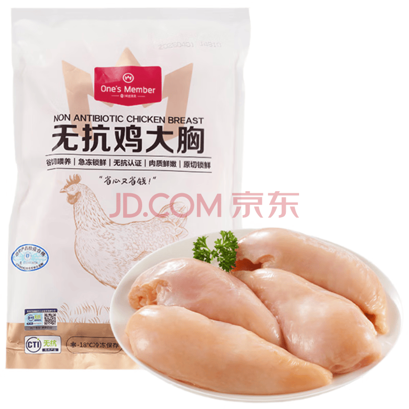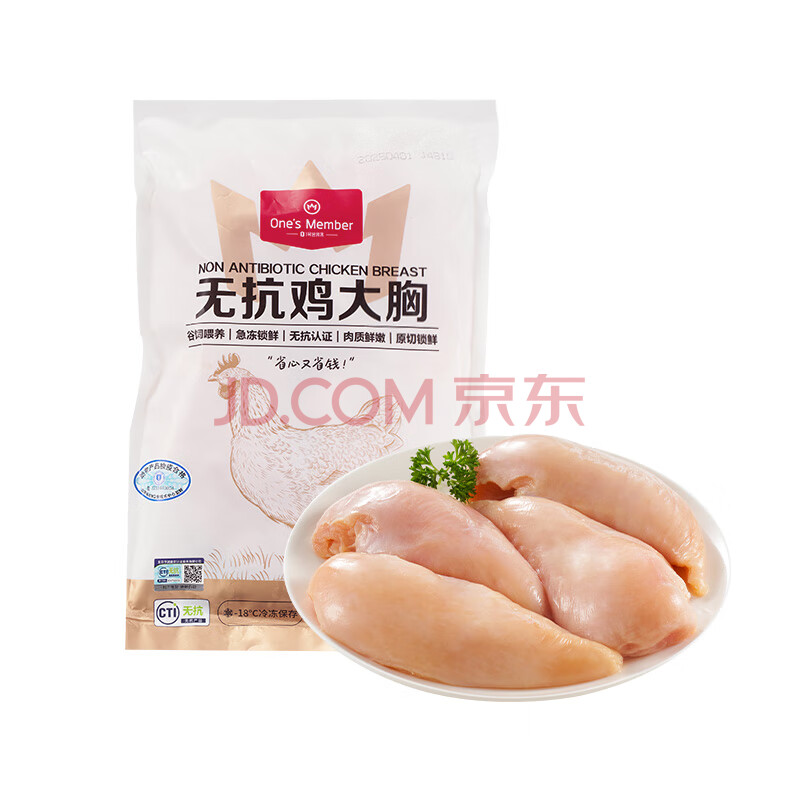 商品名称:1号会员店(One's Member) 无抗单冻鸡大胸 出口级食材鸡肉健身鸡胸肉鸡里脊 净重2斤