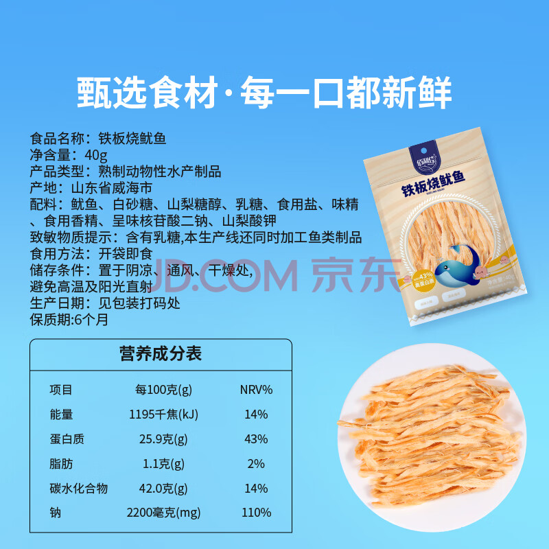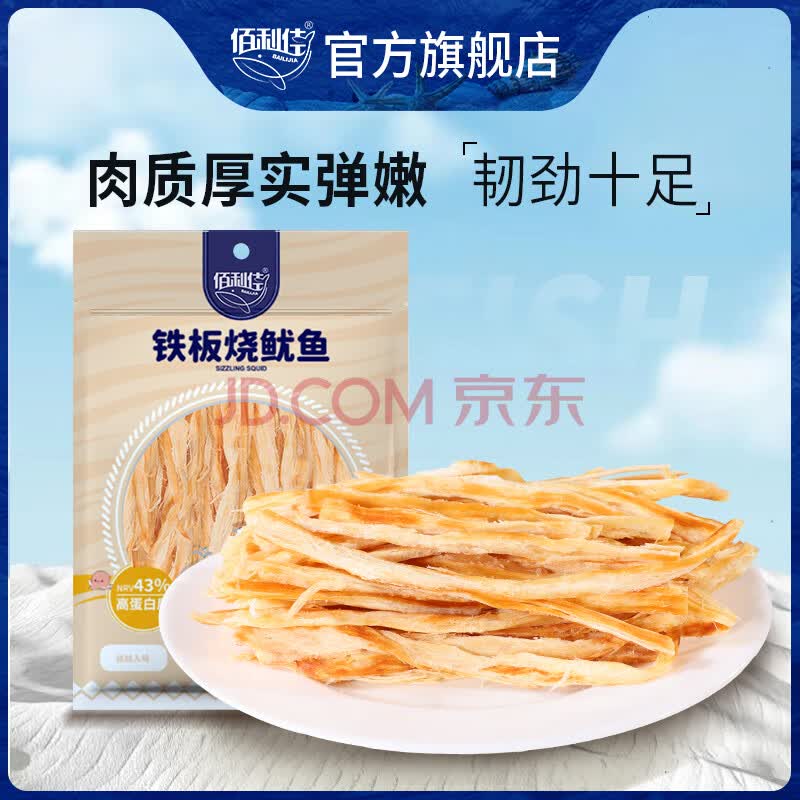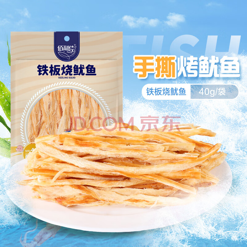 商品名称:佰利佳铁板烧鱿鱼丝鱿鱼条原味海鲜即食解馋手撕鱿鱼干海味小零食40g