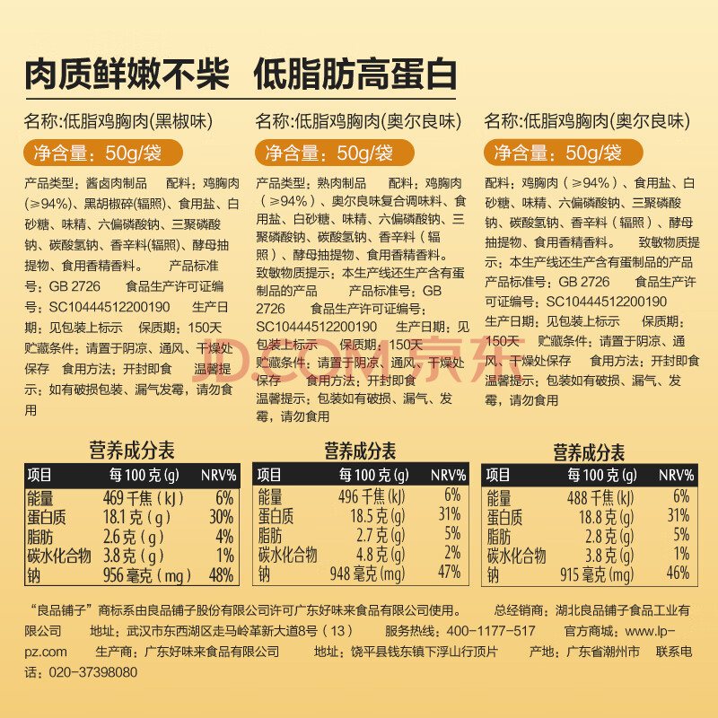 商品名称:良品铺子低脂鸡胸肉奥尔良味50g即食代餐健身速食鸡肉肉干肉脯休闲零食
