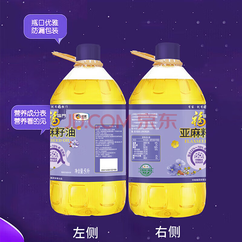 商品名称:福临门营养家亚麻籽油5L一级压榨食用油 中粮出品 5L桶装