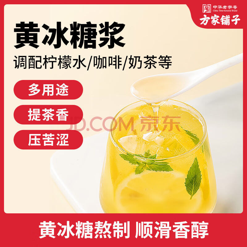商品名称:方家铺子中华老字号 黄冰糖浆665g 手打柠檬茶调鸡尾酒果汁饮料调味糖浆