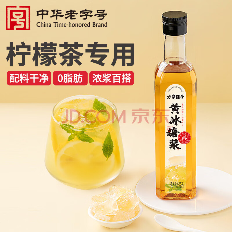 > 方家铺子中华老字号 黄冰糖浆665g 手打柠檬茶调鸡尾酒果汁饮料调味糖浆