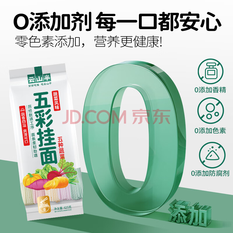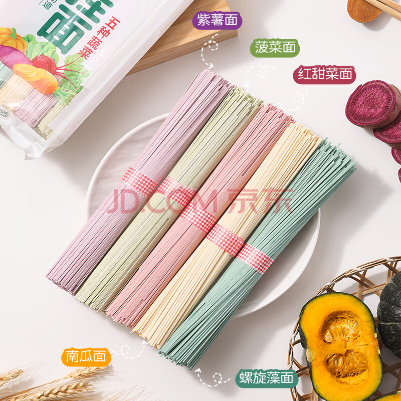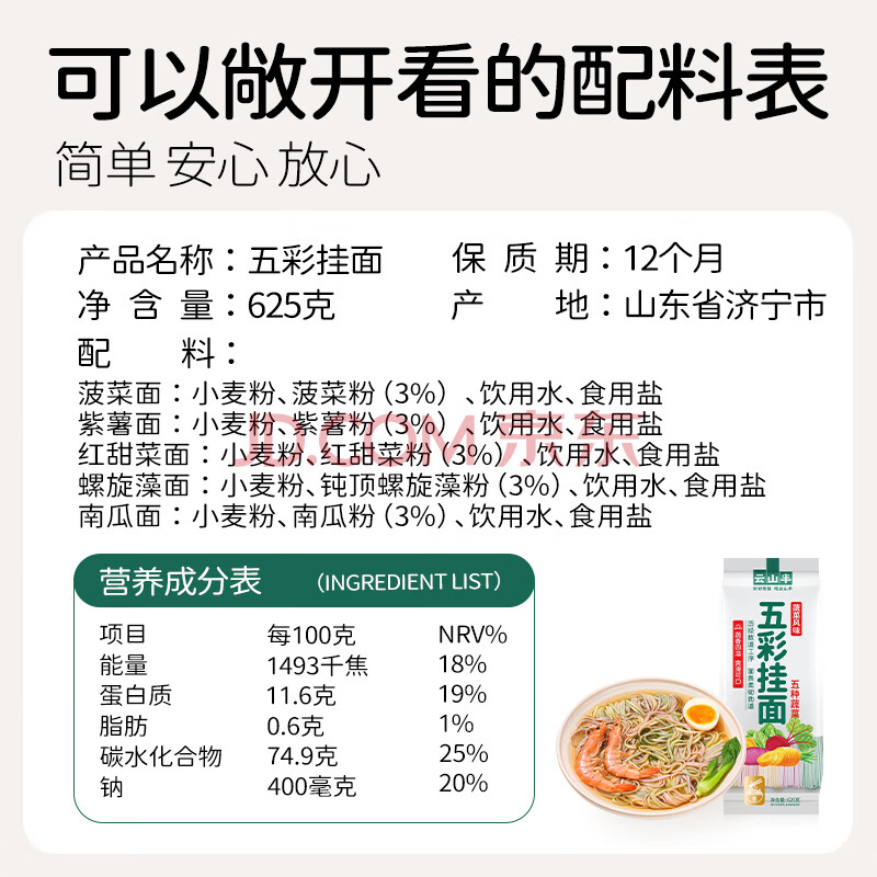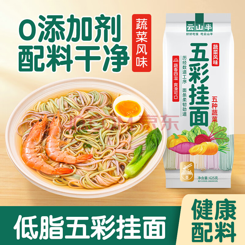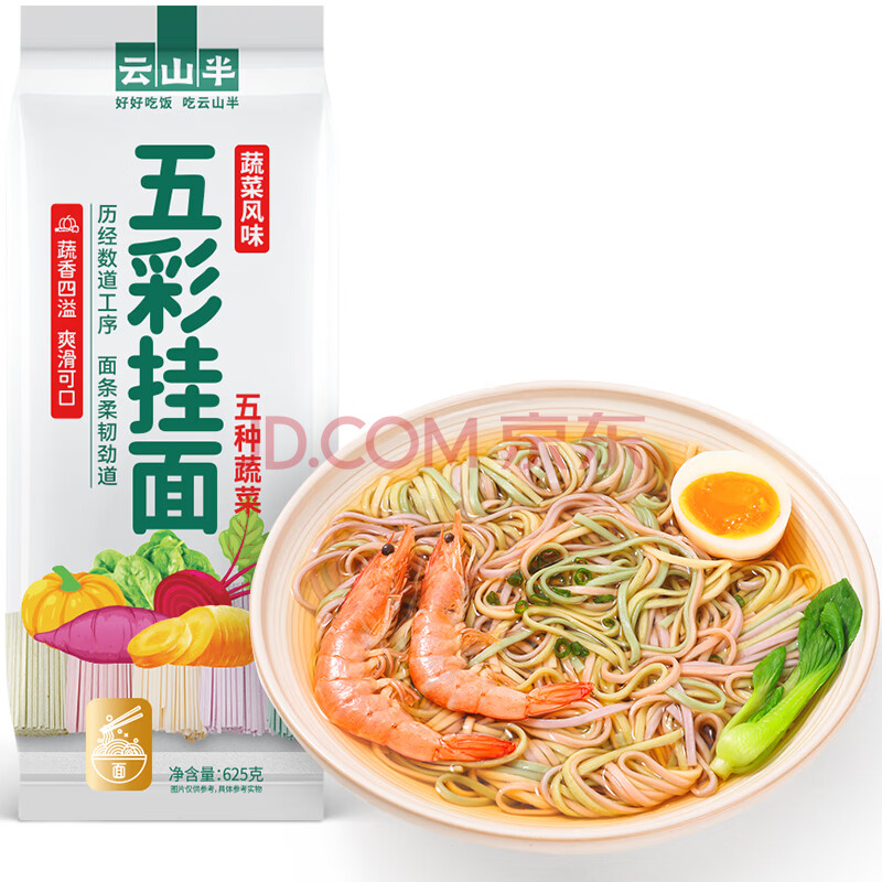 商品名称:云山半五彩果蔬挂面625g 低脂肪儿童蔬菜面条汤面拌面方便速食 营养早餐