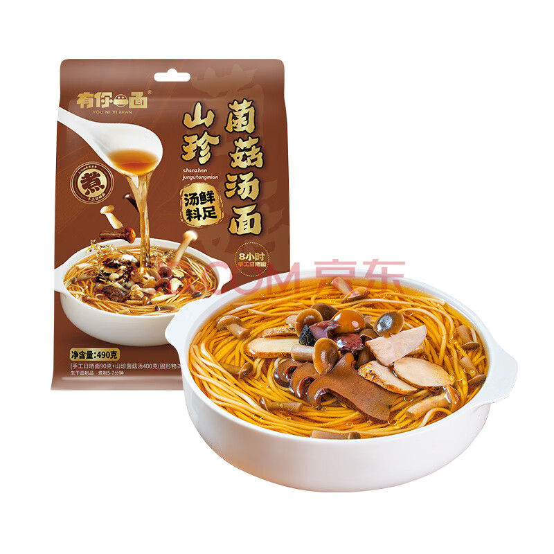 商品名称:有你一面山珍菌菇汤面490g营养原汤面素面6种菌菇汤包云南风味