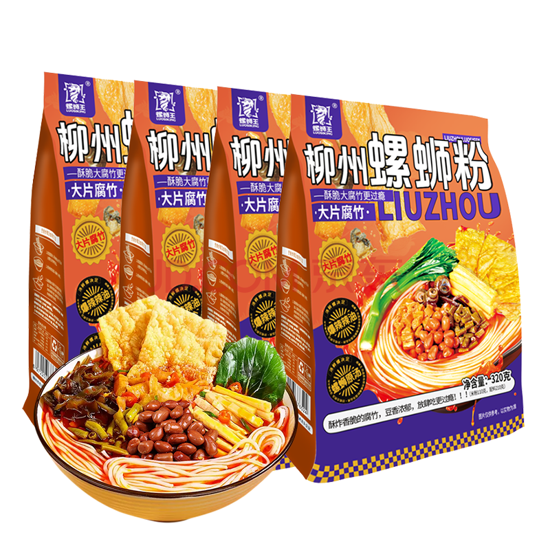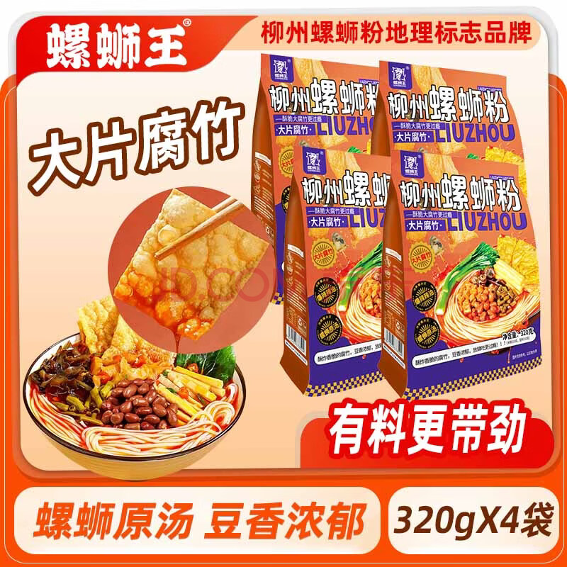商品名称:螺蛳王柳州螺蛳粉大片腐竹320g*4袋 广西特产 酸辣粉方便速食米粉米线