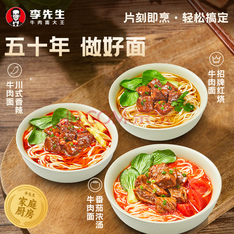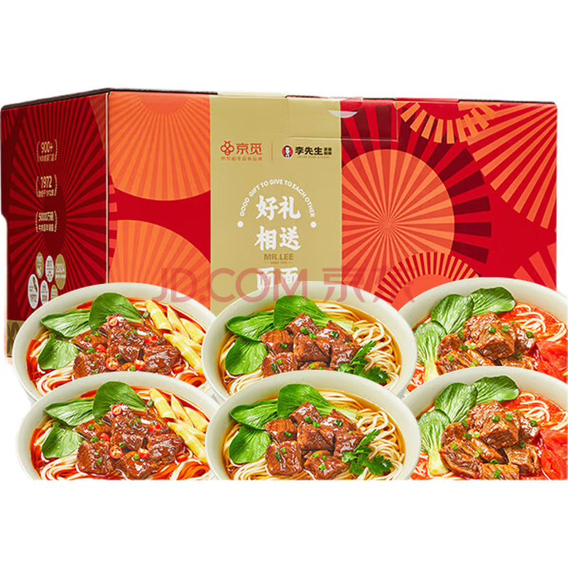 > 李先生*京觅年货节礼盒牛肉面6盒招牌红烧50g大块牛肉 方便面570g*6
