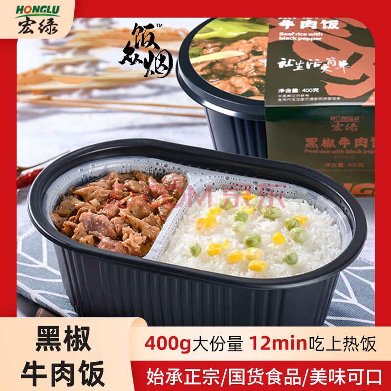 宏绿(HONGLU)自热米饭 五色粗粮米高纤低脂懒人代餐方便米饭 黑椒牛肉饭285g