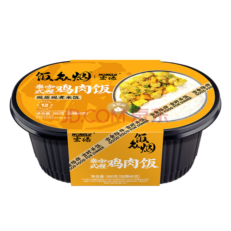 商品名称:宏绿(HONGLU)自热米饭 咖喱鸡肉400G大分量户外团建方便速食米饭午餐夜宵