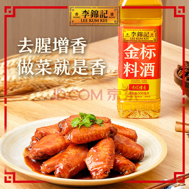 商品名称:李锦记 金标料酒500ml 酒香浓郁 去腥增香 多种香辛料 焖炖小炒蒸煮调味