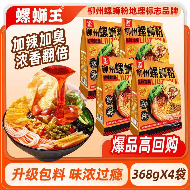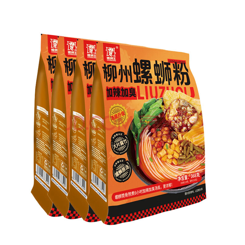 商品名称:螺蛳王柳州螺蛳粉加辣加臭368g*4袋 大片腐竹 地理标志品牌酸辣粉米粉线