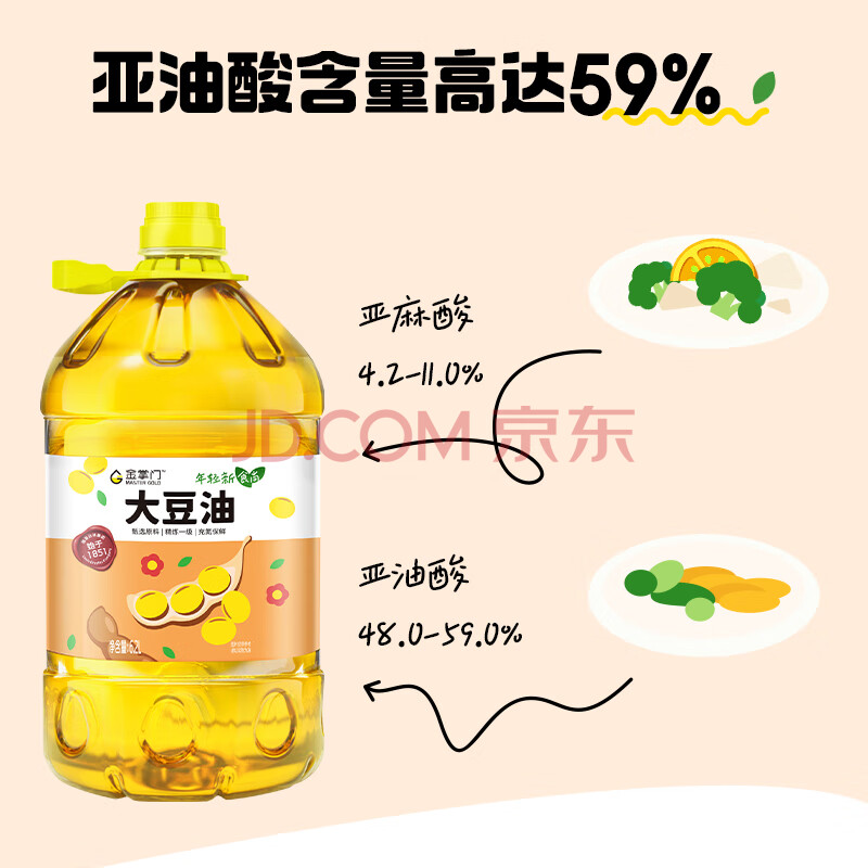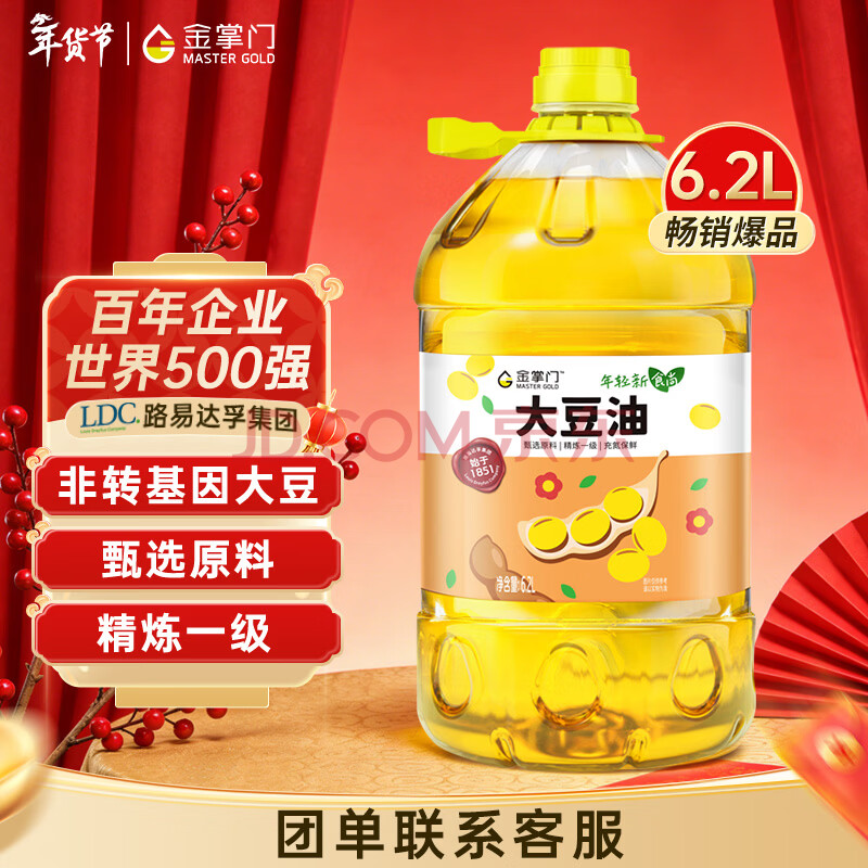 商品名称:金掌门食用油 非转基因 一级大豆油6.2L 家庭食用植物油