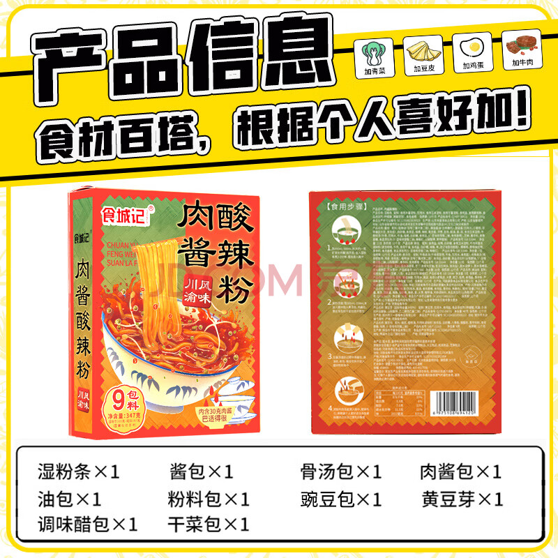 商品名称:食城记肉酱酸辣粉347g盒装 粉条粉丝速食面非油炸宿舍夜宵