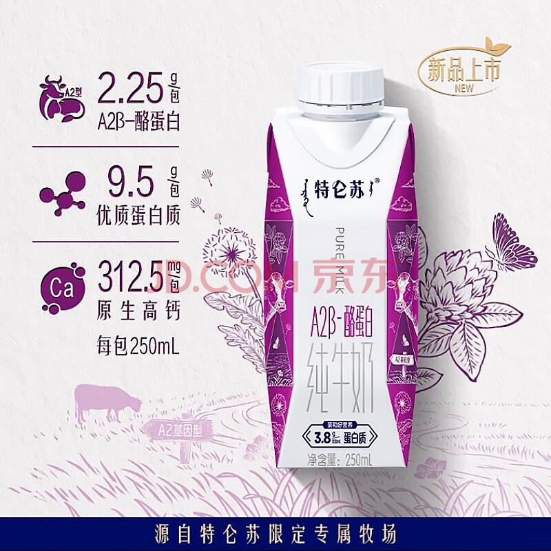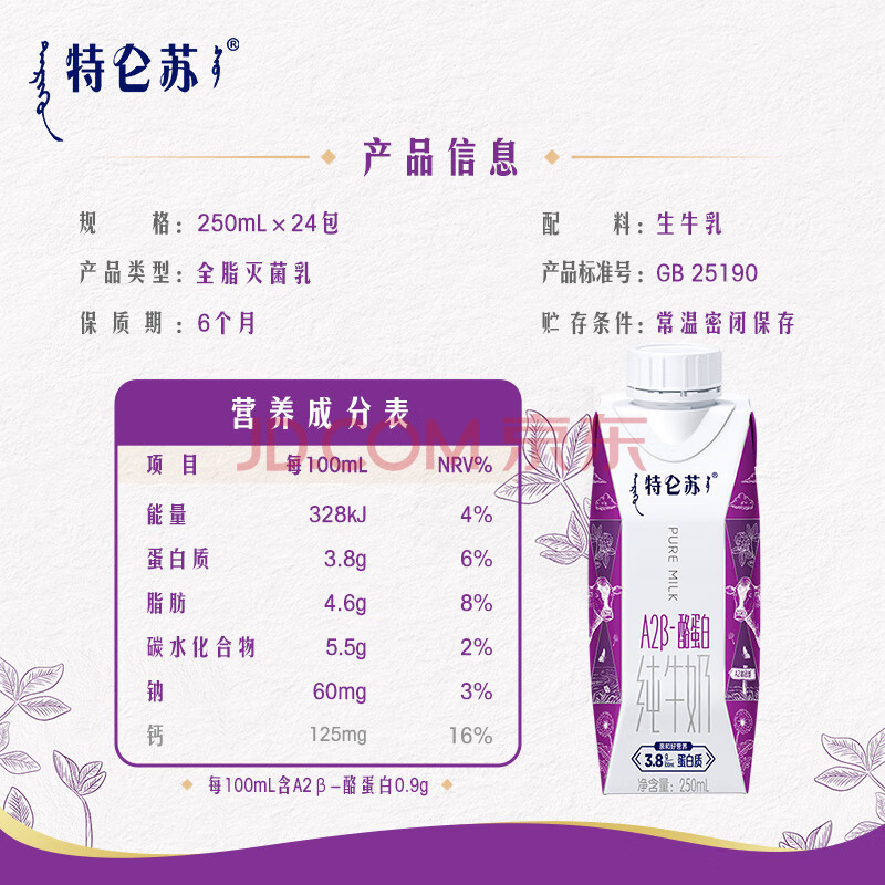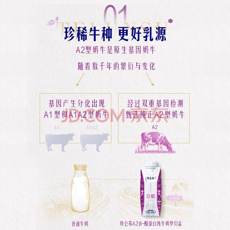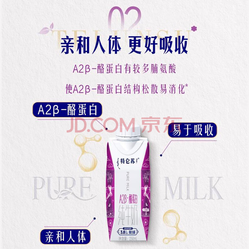 商品名称:蒙牛特仑苏A2β-酪蛋白纯牛奶250ml*24盒 3.8g乳蛋白