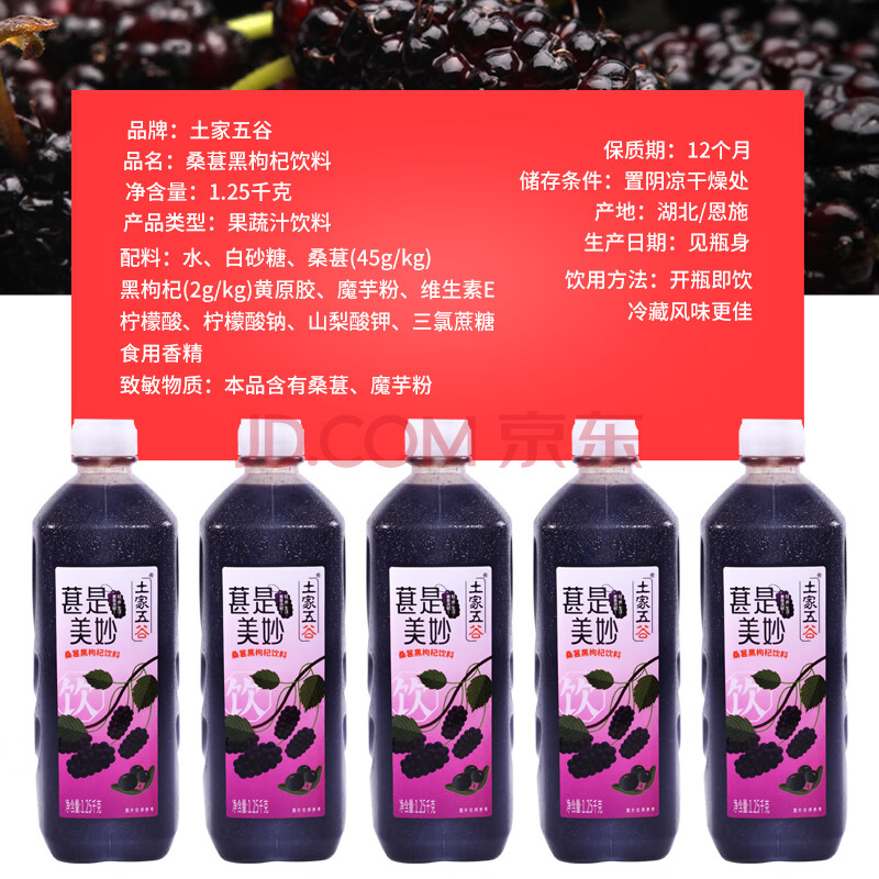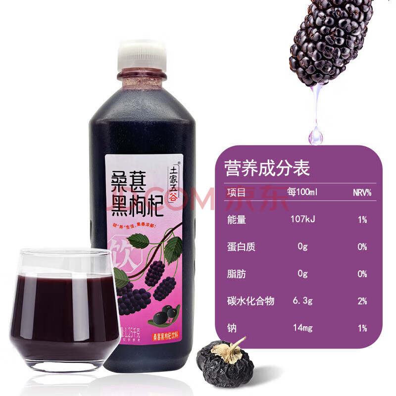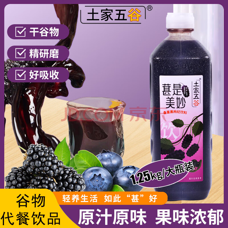 商品名称:土家五谷桑葚黑枸杞汁1.25kg大瓶装富含花青素轻食减脂健康营养0脂肪饮料