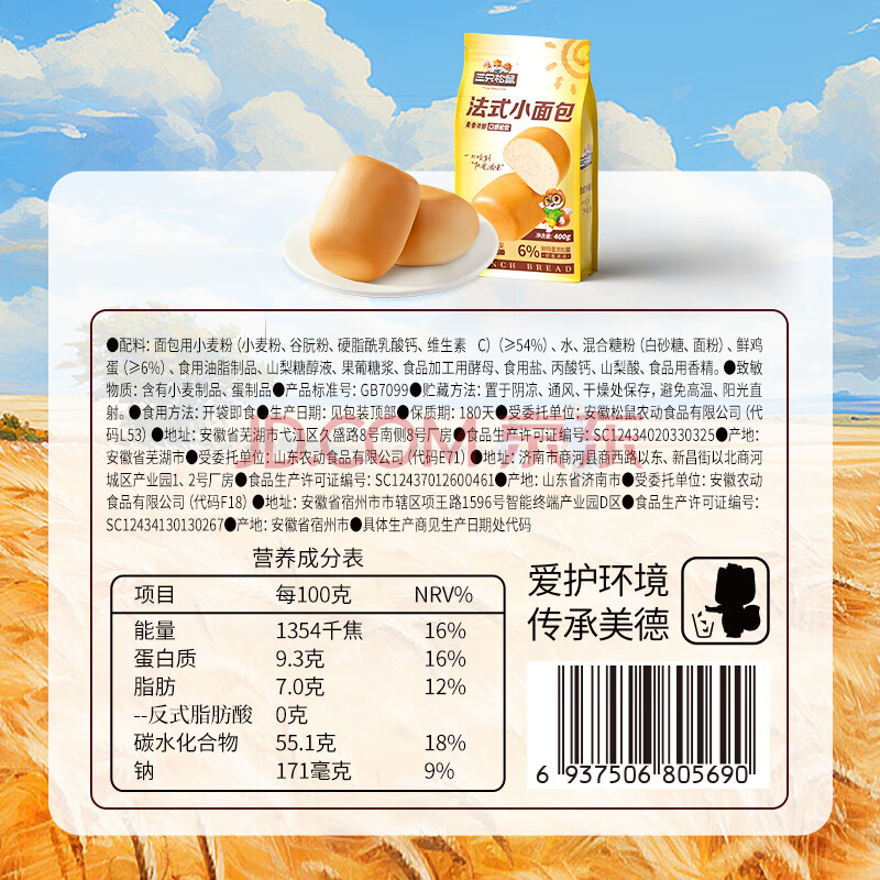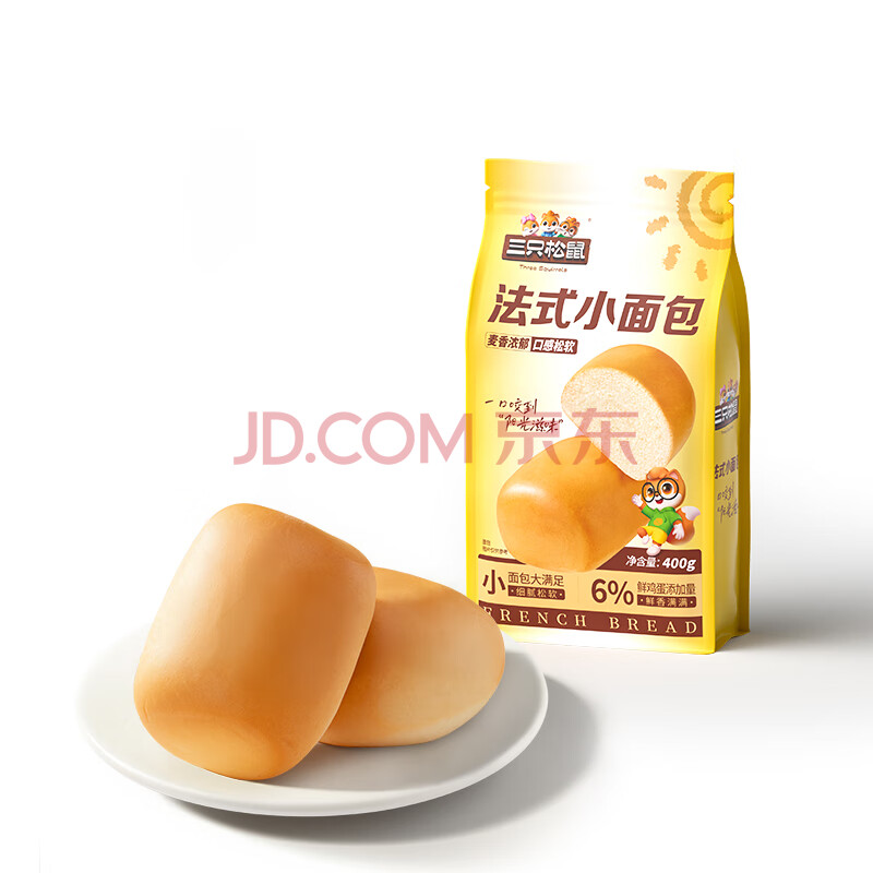 商品名称:三只松鼠法式小面包400g 早餐吐司面包蛋糕营养代餐饱腹下午茶整箱糕点