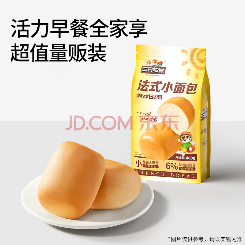 > 三只松鼠法式小面包400g 早餐吐司面包蛋糕营养代餐饱腹下午茶整箱糕点